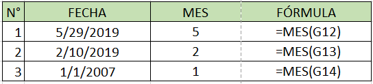 -> Sintaxis: = MES (fecha); donde fecha debe ser una fecha válida para Excel.