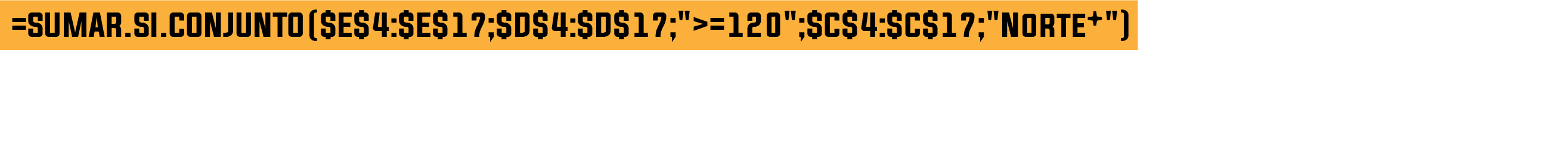 Por otro lado, se encuentra la formula Sumar.si.conjunto, la cual aplicamos bajo el mismo concepto de sumar.si pero en este caso, lo utilizamos para más criterios, por ejemplo, si deseo conocer el monto total de ventas de la región norte, pero solo de aquellas que vendieron más de 120 unidades (inclusive), debemos tener en cuenta que cuando se menciona inclusive el número limite es considerado dentro del rango por lo que utilizaremos ">=" o "<=" dependiendo del caso. Asimismo, podemos observar que estamos utilizando 2 criterios, con lo cual, inmediatamente debemos identificar que usaremos la formula Sumar.si.conjunto.