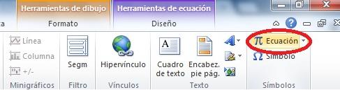 Para poder nosotros ingresar una ecuación se dirigen a la Ficha de Insertar y le dan click al icono de Ecuación.