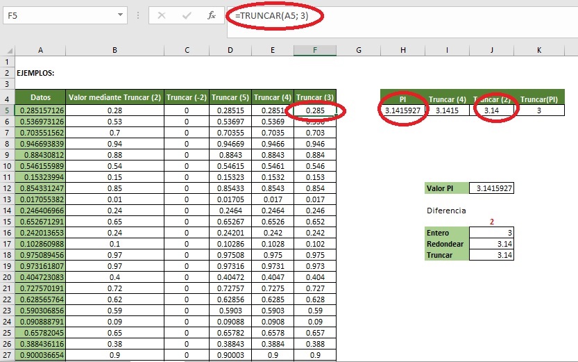 En este ejemplo se puede encontrar que la función truncar puede reducir los decimales, según la cantidad que desees.